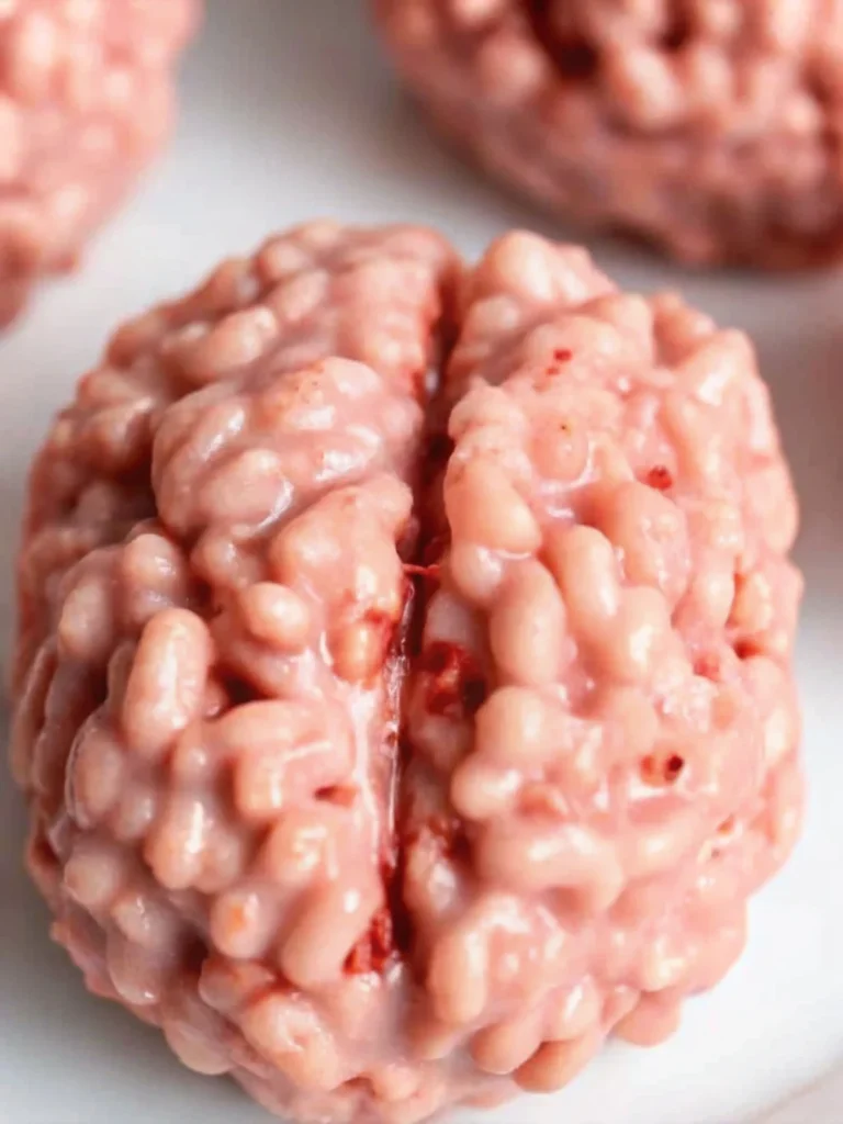 Work quickly when mixing—if the marshmallow mixture cools too much, it won’t bind properly. Let the mixture cool slightly before shaping to avoid burns. Gradually add coloring for the best realistic brain effect. Store brains in airtight containers at room temperature up to 1 week. Perfect for Halloween dessert tables, zombie-themed parties, or spooky kids’ activities.