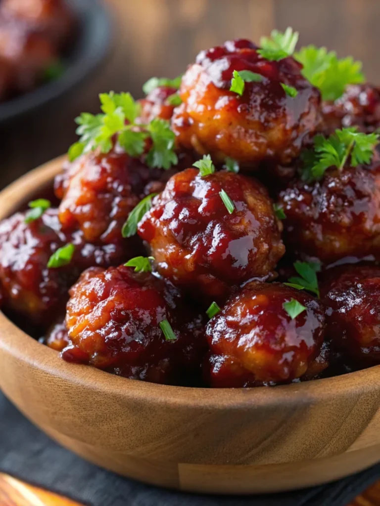 - Toss hot meatballs in warm cranberry BBQ sauce until evenly coated. Rest 2–3 minutes before serving.