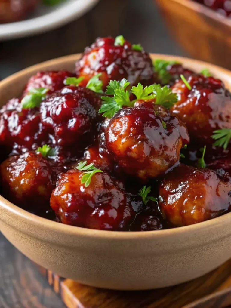 Serve on a platter with toothpicks for parties, or keep warm in a slow cooker for gatherings. Garnish with parsley and whole cranberries for presentation. Make-ahead tip: form meatballs up to 48 hours ahead or freeze cooked meatballs for up to 3 months.