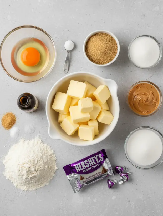 Creating perfect Peanut Butter Blossoms requires quality ingredients that work together harmoniously. Here’s everything you’ll need: