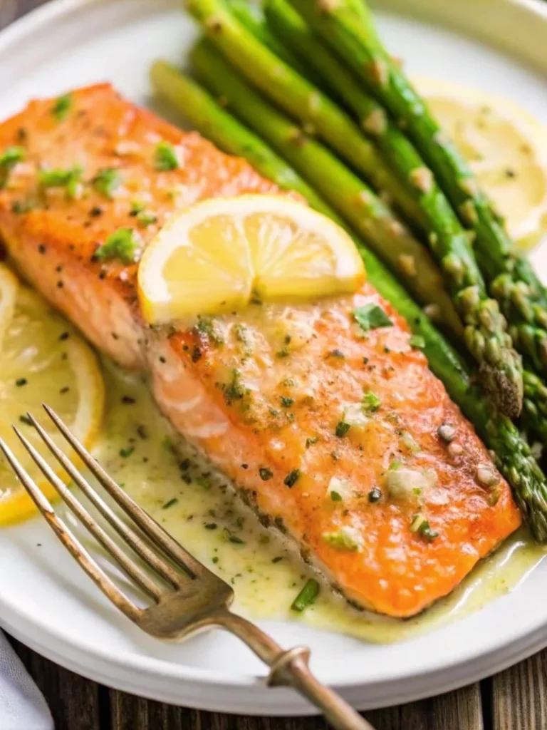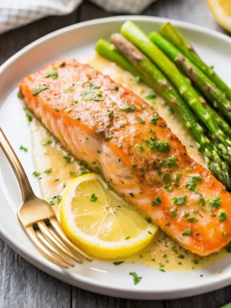 This salmon with garlic lemon butter sauce recipe delivers restaurant-quality flavor in just 20 minutes. Perfectly seared salmon fillets are finished with a luscious garlic butter and lemon sauce, making this a foolproof, healthy, and elegant weeknight dinner.