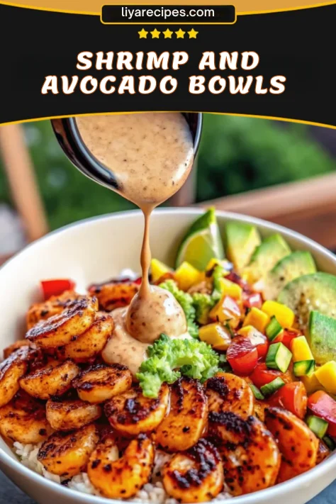Use thawed shrimp and cook just until opaque to avoid rubbery texture. Assemble bowls fresh for best taste. Avocado is best added just before serving to prevent browning.