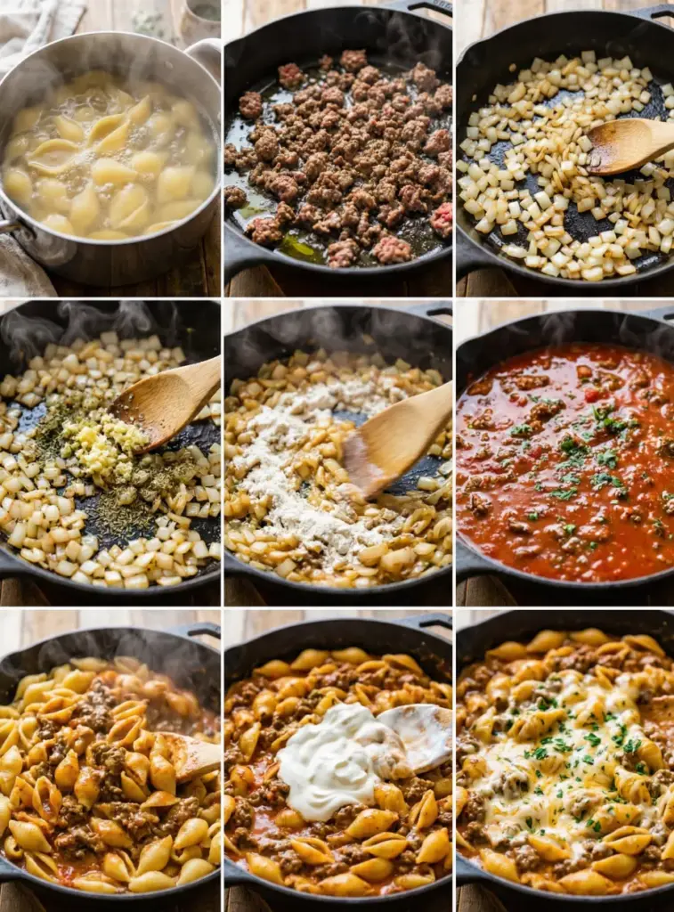 This Creamy Beef and Shells recipe transforms simple pantry ingredients into an extraordinary comfort food experience that rivals any restaurant dish. With its perfect balance of rich ground beef, tender pasta shells, and luxuriously creamy sauce, it’s no wonder this recipe has become a viral sensation and family favorite across countless kitchens.