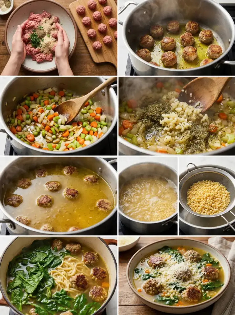 Add the chicken stock to the pot and bring the soup to a simmer. Return the browned meatballs to the pot and simmer for 15 minutes, allowing the flavors to meld beautifully.