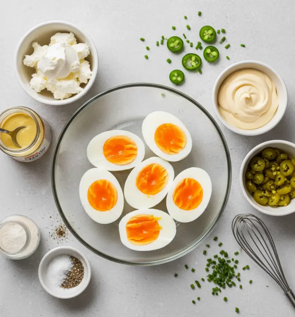 These ingredients are pantry staples, making Jalapeño Popper Deviled Eggs an accessible recipe. For semantic richness, think of this as your go-to for “jalapeño stuffed eggs” or “spicy egg appetizers,” ensuring it appeals to searches for easy party snacks.