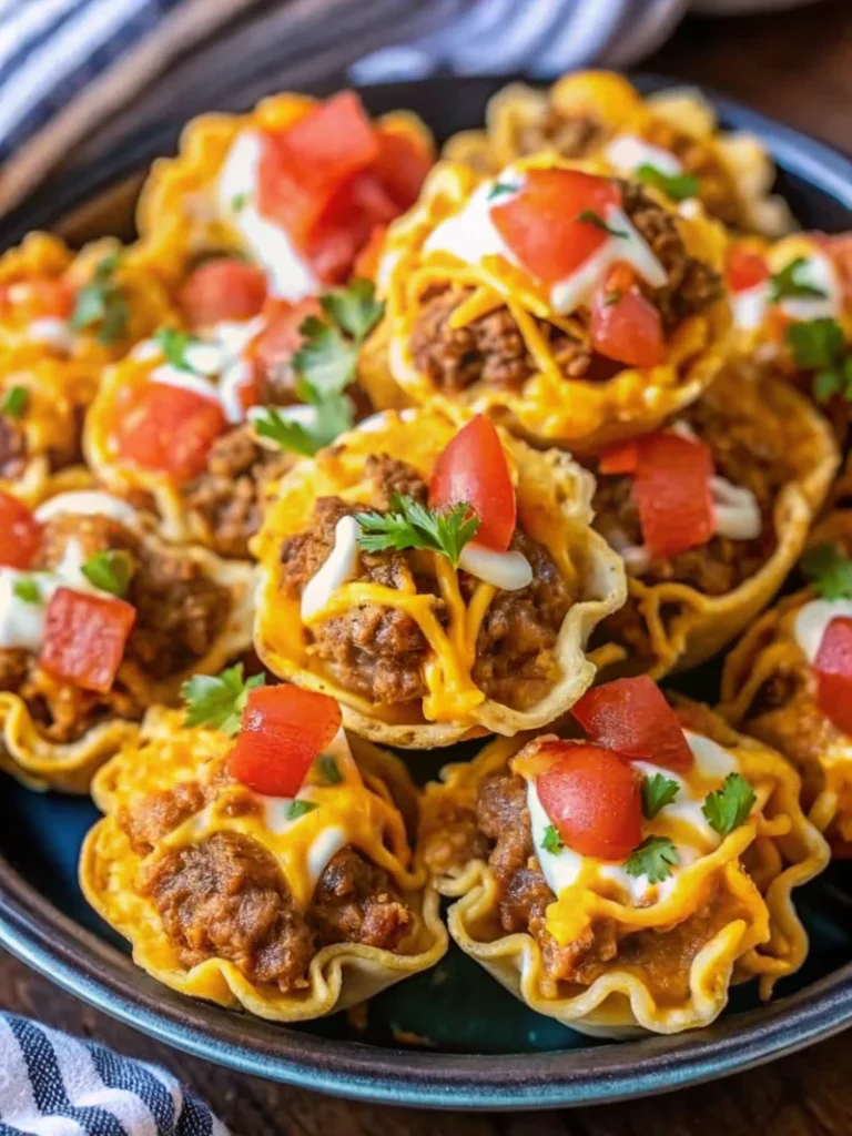 These Taco Ranch Bites are the ultimate mini appetizers for any party. Crispy phyllo cups are filled with seasoned ground beef, creamy ranch mixture, and fresh toppings for a flavor-packed bite-sized snack ready in just 25 minutes.