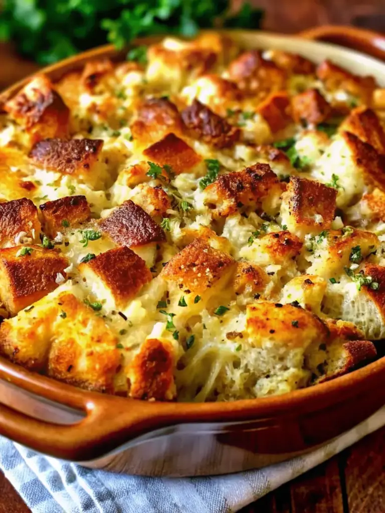 Remove from the oven and let your chicken stuffing casserole rest for 5 minutes before serving. This resting period allows the structure to set, making serving cleaner and helping flavors fully develop.