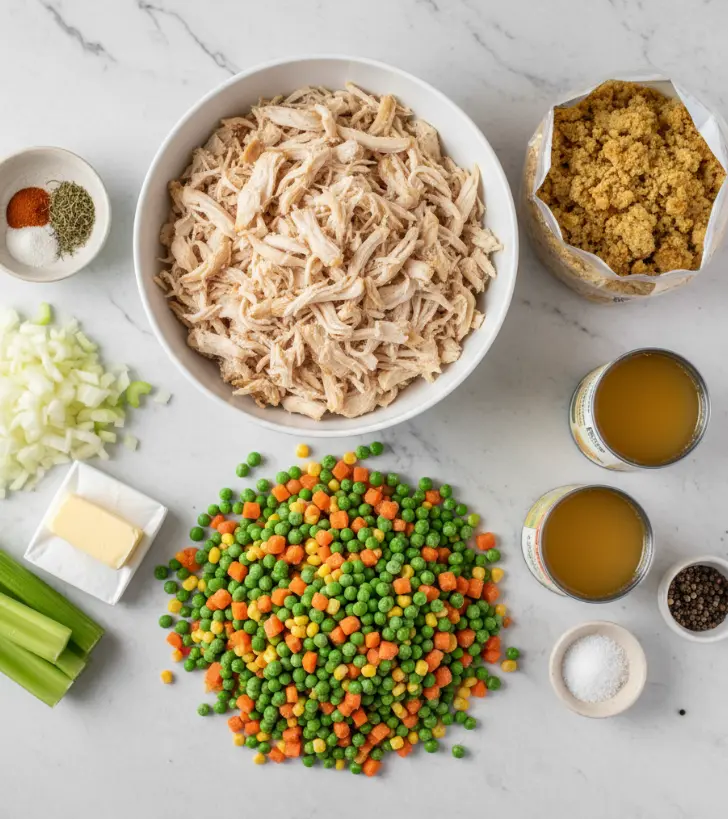 Here’s everything you need to create a stunning chicken stuffing casserole: