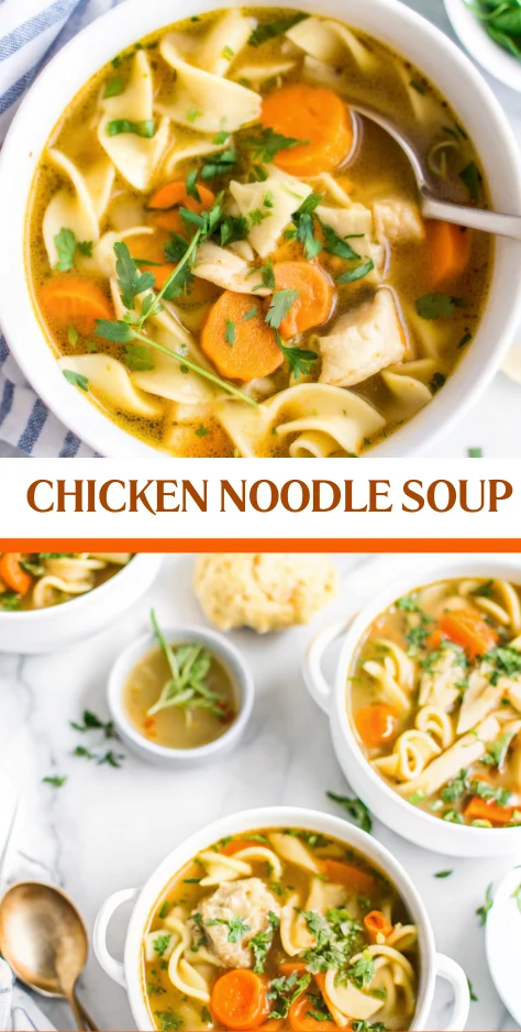 Keywords: chicken noodle soup, homemade soup, comfort food, classic recipe, easy chicken soup